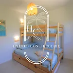 Located in the Giens Peninsula district, the 3-bedroom Villa Moderne Giens Proche Plage Piscine Climatisation Wifi By Hc comprises a terrace along with a pool view. Offering an outdoor swimming pool, this accommodation invites guests to visit Plage De La Madrague, located just 1.3 km away.